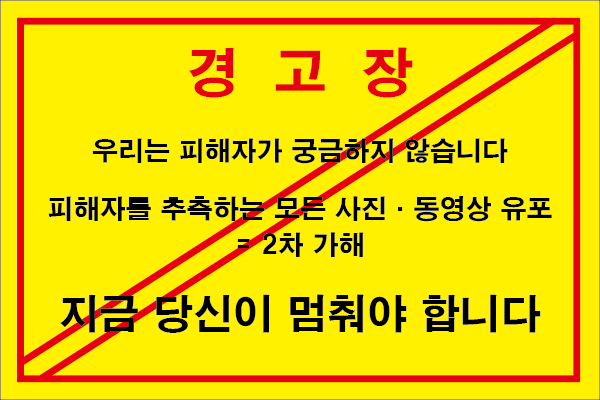 ˝경고장에서 ‘피해자가 궁금하지 않다’는 건 문자 그대로 궁금하지 않다는 것이 아닙니다. 피해자를 호기심에 뒤지고, 동영상을 올린다거나 사진을 올리고 유포하는 행위를 통해 발생하는 폭력에 가담하지 않겠다는 뜻입니다. 공정한 수사를 통해 가해 사실이 정확하게 밝혀지고 그에 맞는 처벌을 받는 것에 집중하고 싶다는 뜻입니다. 피해가 아닌 가해에 집중해야 하기 때문입니다.