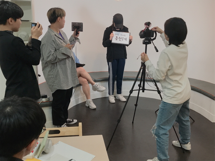 드디어 소중한 메세지가 담긴 색지를 들고, 각자가 맡은 역할에 긴장하며 촬영에 참여하였는데요.