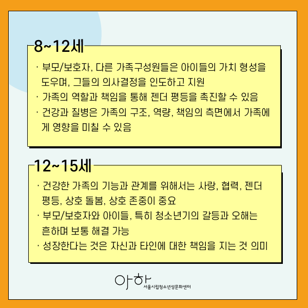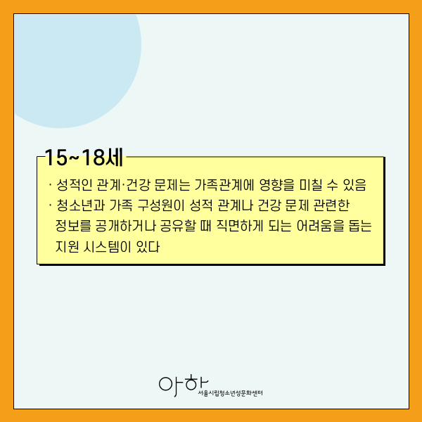 · 청소년과 가족 구성원이 성적 관계나 건강 문제 관련한