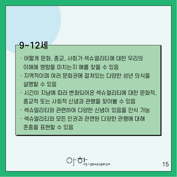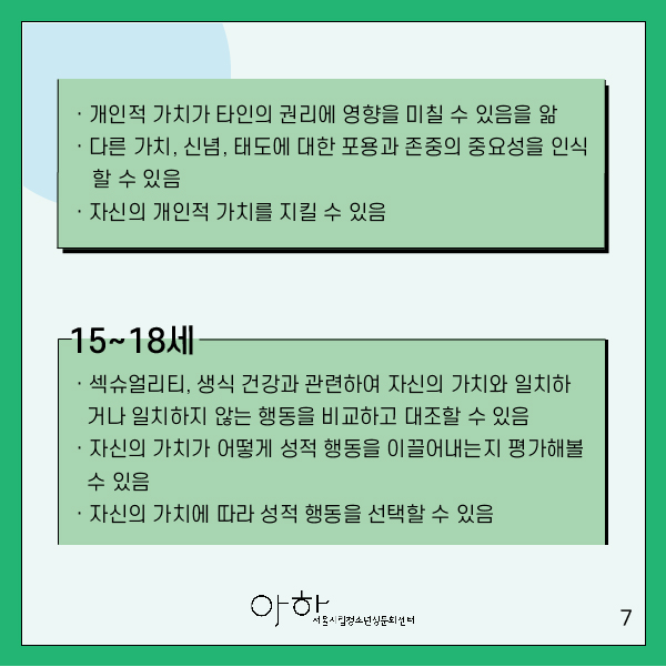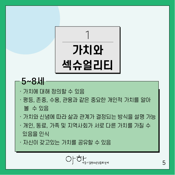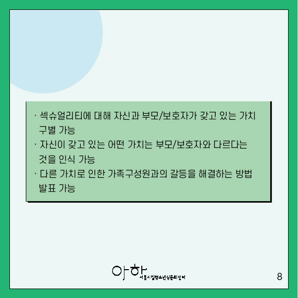 ▶섹슈얼리티에 대해 자신과 부모/보호자가 갖고 있는 가치를 구별할 수 있다.