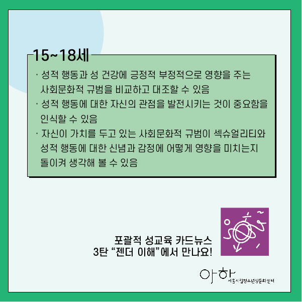 ▶성적 행동에 대한 자신의 관점을 발전시키는 것이 중요함을 인식할 수 있다.