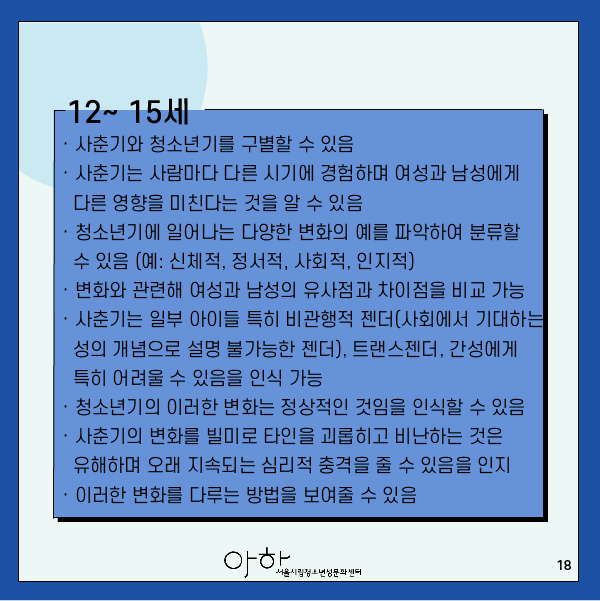 · 사춘기와 청소년기를 구별할 수 있음