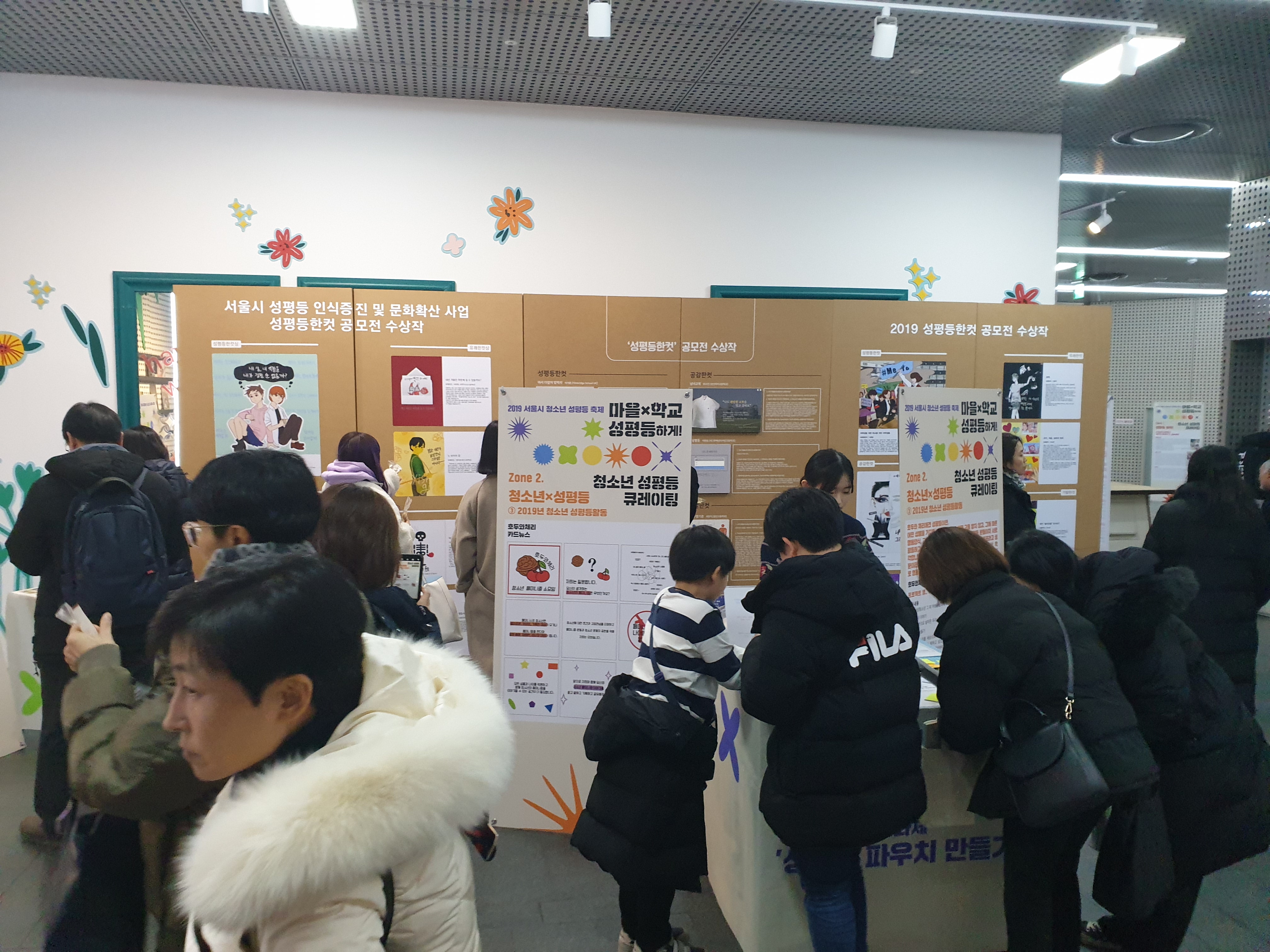 포럼을 마치고 로비에서는 청소년 성평등 큐레이션 섹션으로 중/고등학교 학생들과 활동한 프로그램의 안내 및 다양한 활동 결과물이 전시되었고 청소년이 운영하는 성평등 체험부스가 진행되었다. 이 사업을 통해 성평등 활동 지원을 받고 있는 ‘호두와체리’에서는 성평등 파우치 만들기를, ‘위티’에서는 콘돔과 반창고를 물물교환 하는 프로그램을 ‘유한공고 성평등 인권 동아리’에서는 성평등 감수성 테스트를 운영하여 곳곳이 북적였다.