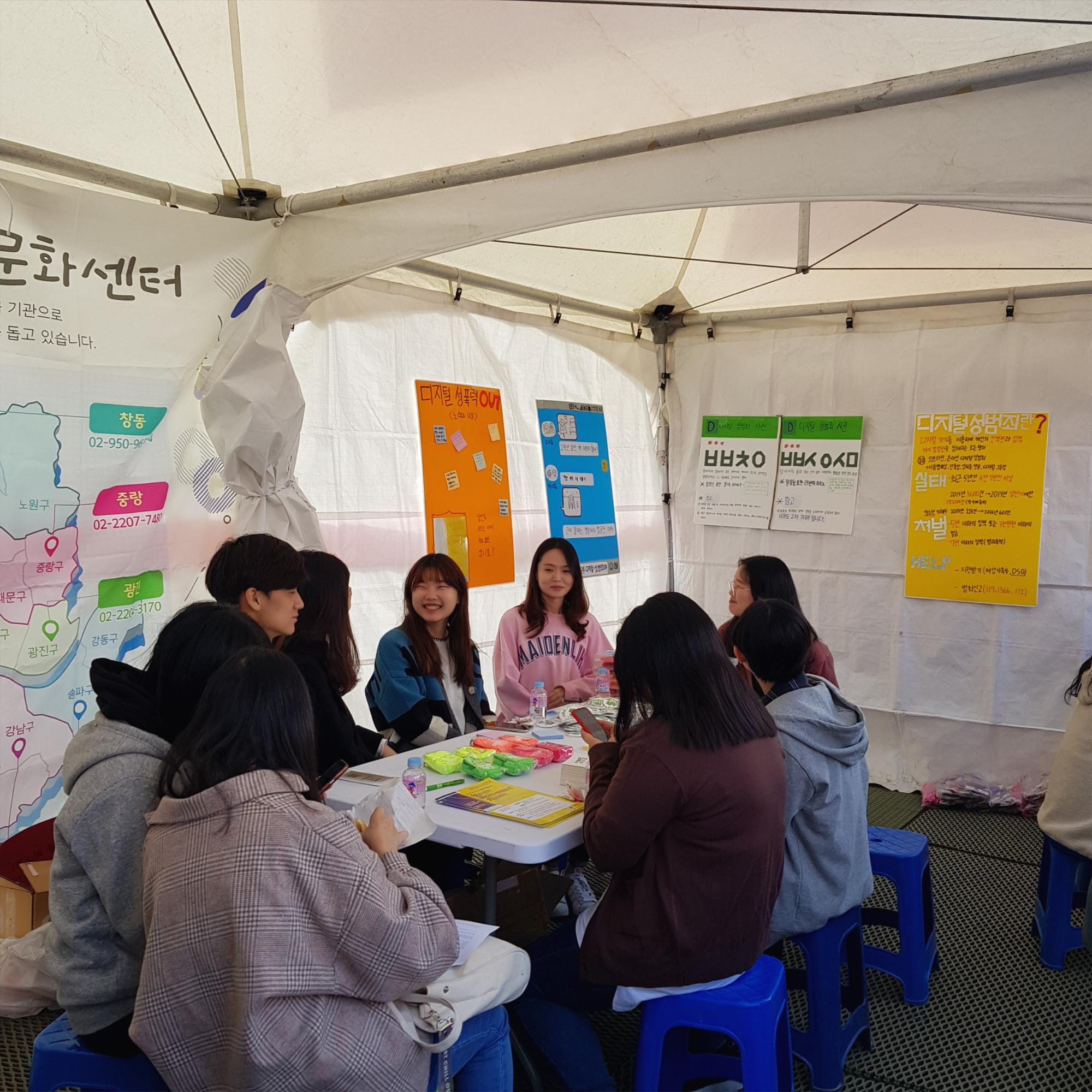 추가적으로, 기획협력팀과의 협업으로 10대와 20대 사이의 성평등 문화 교류도 이루어졌다. 아하!센터가 운영하는 문영여고 동아리 ‘여우사이’와 함께 놀라운 토요일 서울 EXPO(이하 ‘놀토엑스포’)에서 디지털 성폭력을 주제로 부스 활동을 진행하였다.