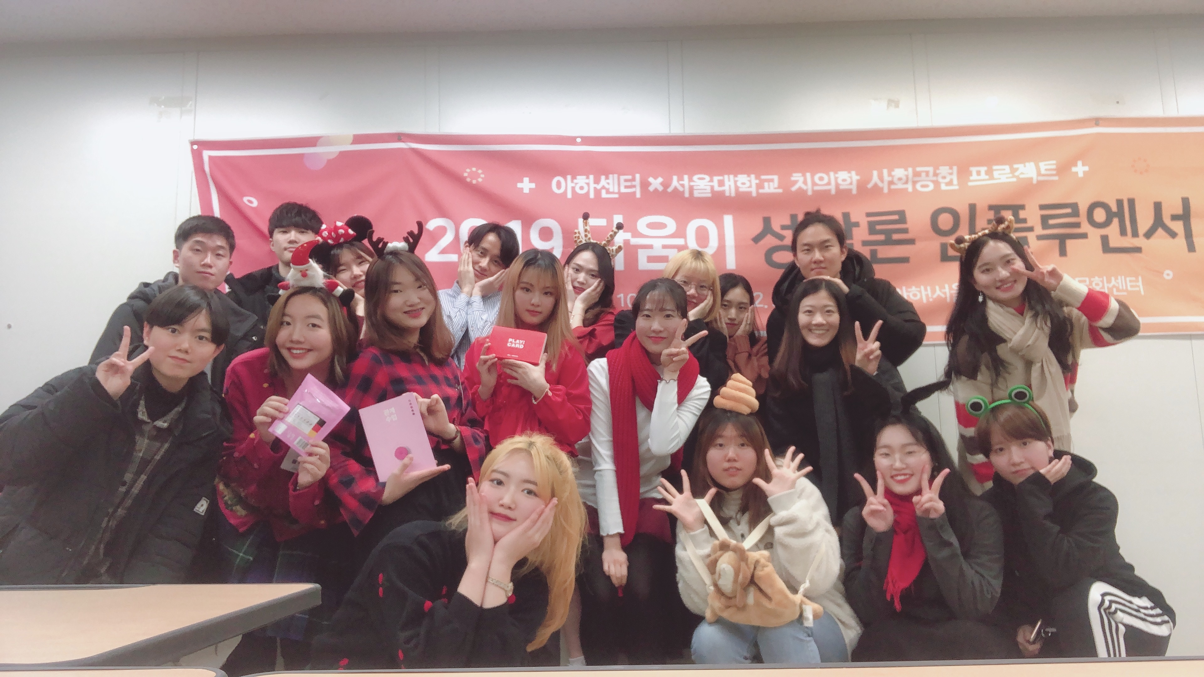 2019 성담론 인플루엔서 다움이는 자유롭고 실질적인 성담론과 성교육을 위해 20대 청년인 서울대학교 치의학대학원 치의학과 학사과정 2학년 ‘다움이팀’이 주최하고, 아하!센터가 협업해 모집했다. 성교육의 사각지대에 놓인 19-24세의 청년을 대상으로 성교육을 진행하고 우리 사회의 성 인식에 대해 토의하는 시간을 가졌다.