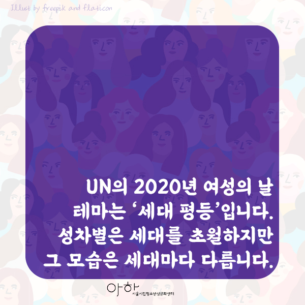 UN의 2020년 여성의 날 테마는 '세대 평등'입니다.