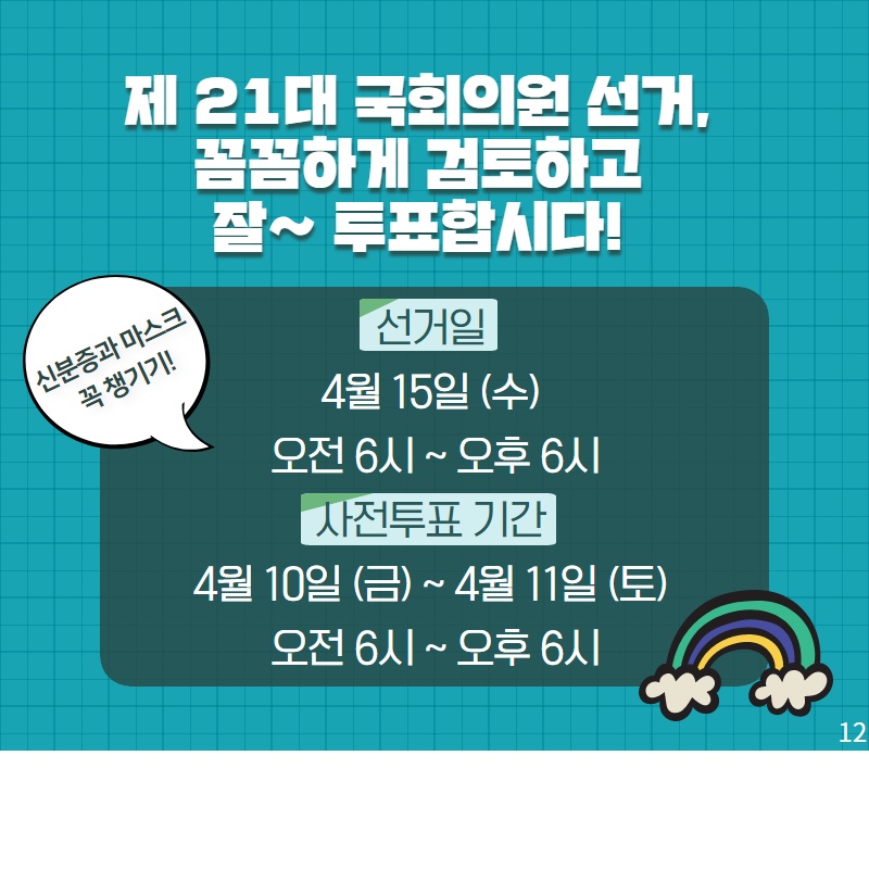 잘~ 투표합시다!(무지개가 그려진 초록색 배경)