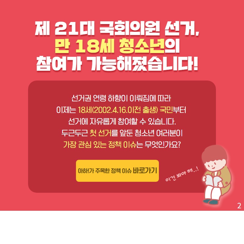 제 21대 국회의원 선거, 만 18세 청소년의 참여가 가능해졌습니다!