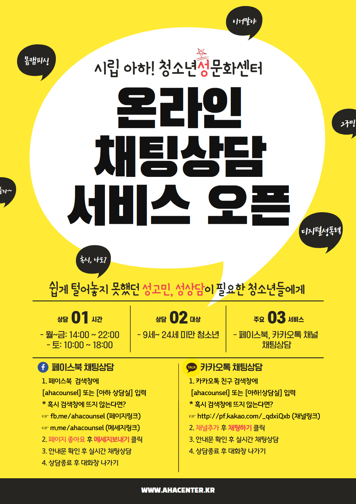 - 페이스북(아하 상담실): http://fb.me/ahacounsel