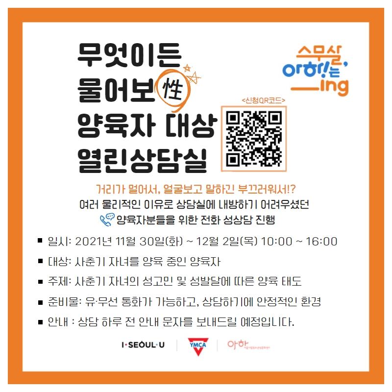 양육자에게 활짝 열린 <열린상담실>은 12월 2일 16시로 종료되지만, 앞으로도 아하!상담실은 성에 대해 고민하는 청소년 및 양육자, 지도자를 만나기 위해 다양한 방법으로 ing할 것이다.