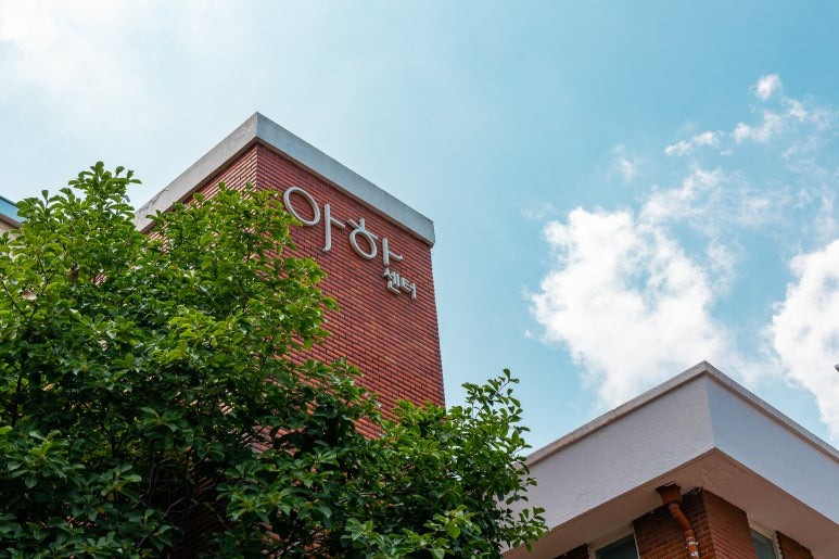 아하!센터는 정문에 작은 정원이 있어요.